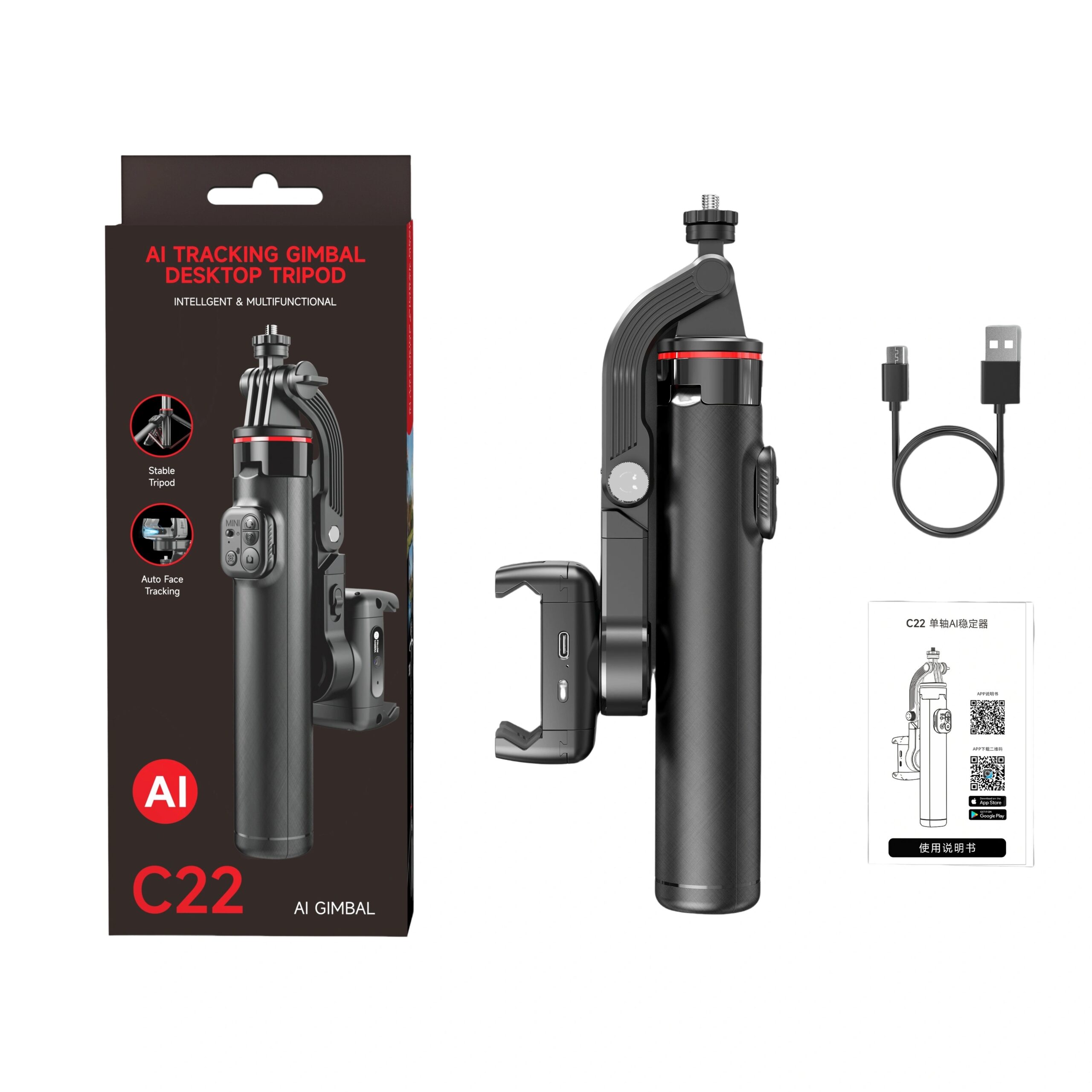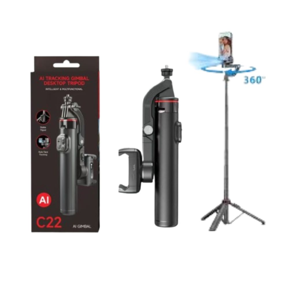 The C22 AI Face Tracking Gimbal Tripod is a smart and versatile stabilizer designed for modern content creators who want hands-free recording with smooth tracking and stable video output.